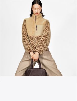 寒い季節の定番アウターウェアを、Tモノグラムのパネルと、冷気をシャットアウトするハイネックでアップデート。柔らかなハイパイル フリースを使用し、リラックス感のあるボクシーフィットに仕立てた、暖かなジャケットです。袖口と裾のリブ素材が暖かさをキープします。