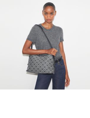 シグネチャーのモチーフ。時代を超えて支持される素晴らしいスタイルを反映したコレクションです。丁寧に織り上げたジャガードのTモノグラム メッセンジャーバッグ。 柔らかなマイクロスエードの裏地、内側と外側にポケット付き。あらゆるディテールにこだわり、機能性と汎用性を追求しました。