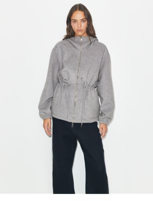 • 前中央にリバーシブルのダブルファスナー開閉、フードとウエストにドローコード、伸縮性のある袖口